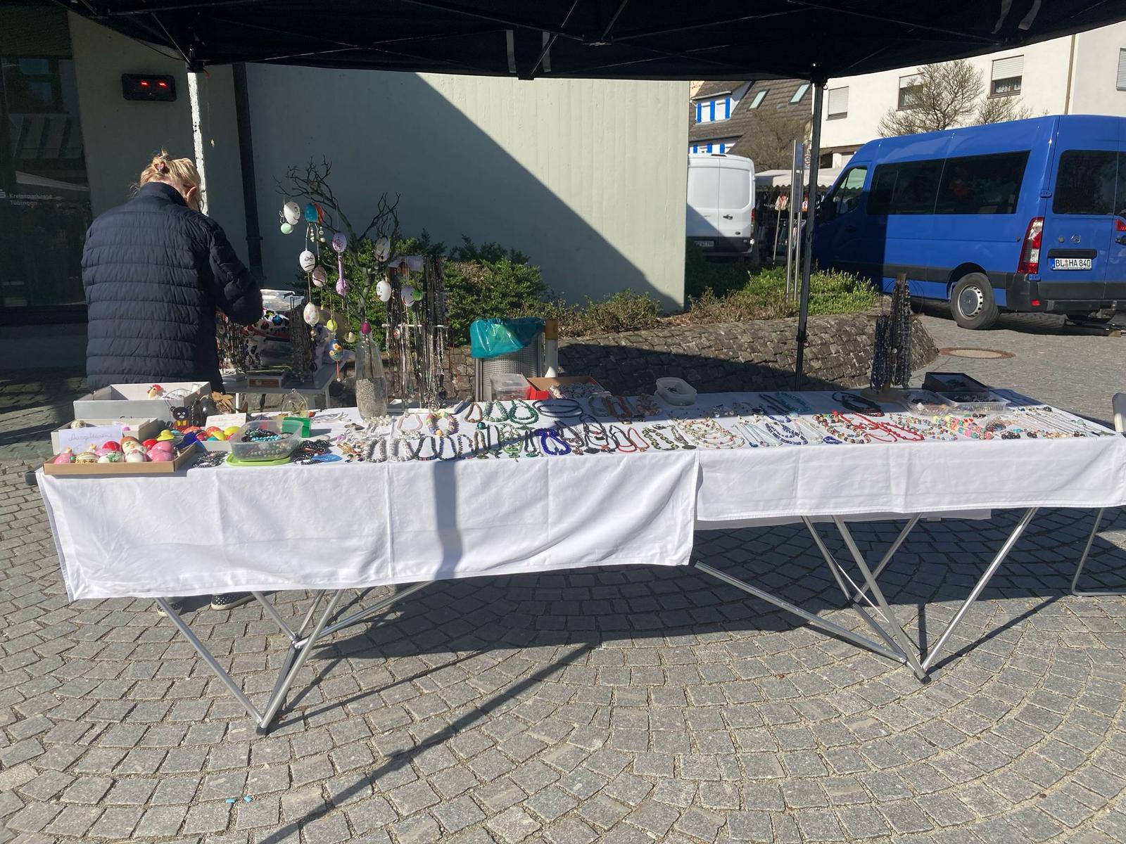 Rund 40 Marktstände boten ihre Waren an, von der Handtasche über Anzieh- und Spielsachen, Hüte, Haushaltswaren, Dekorartikel für Ostern, waren auch verschiedene Speisen- und Getränkeangebote vorhanden. Für den süßen Hunger hatten die Süßwarenstände ein abwechslungsreiches Angebot dabei.