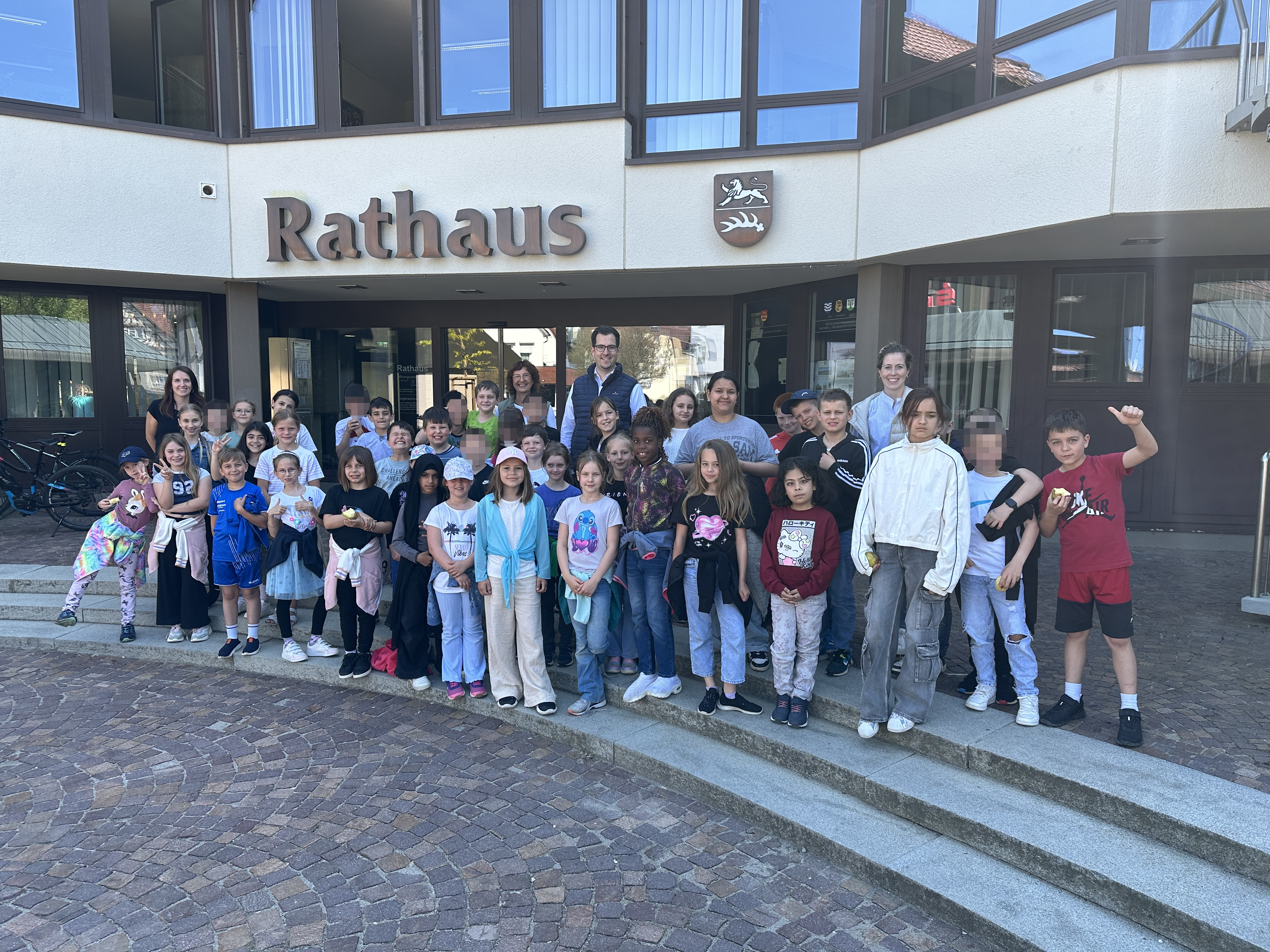 Ein spannender Tag voller neuer Eindrücke erwartete die Drittklässler der Steinäcker Schule bei ihrem Besuch im Rathaus. Bürgermeister Florian King hieß die Schülerinnen und Schüler willkommen und gab ihnen interessante Einblicke in seine vielfältigen Aufgaben.