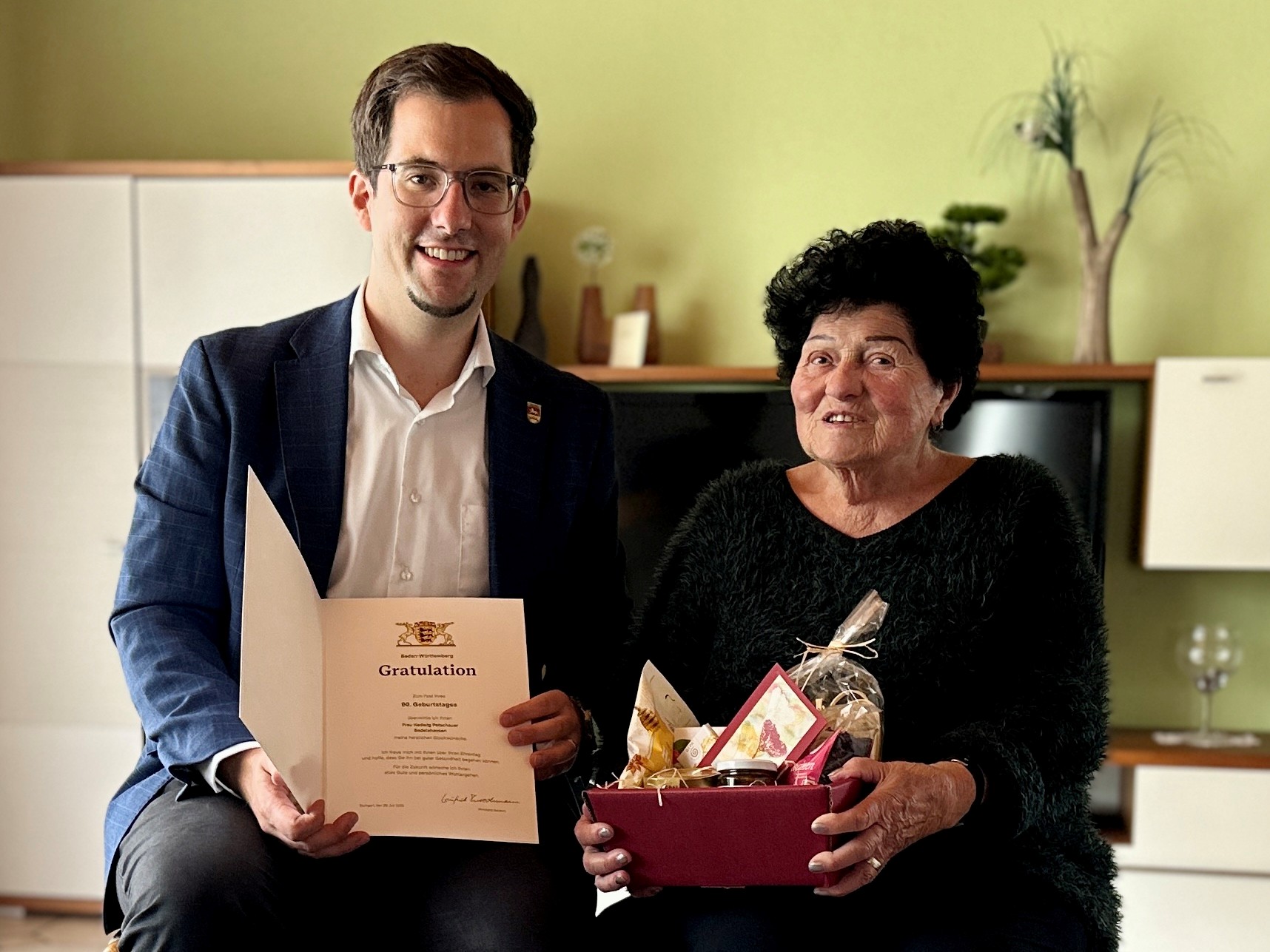 Am vergangenen Montag, 28. Juli 2025, feierte Frau Hedwig Petschauer ihren 90. Geburtstag. Unser Bürgermeister Florian King überreichte ihr zur Feier einen kleinen Geschenkkorb der Gemeinde verbunden mit den besten Glückwünschen. Zu diesem schönen Anlass gab es für Frau Petschauer auch die Gratulationsurkunde von Herrn Ministerpräsident Winfried Kretschmann, die Herr King ebenfalls mit Freude überreichen durfte.