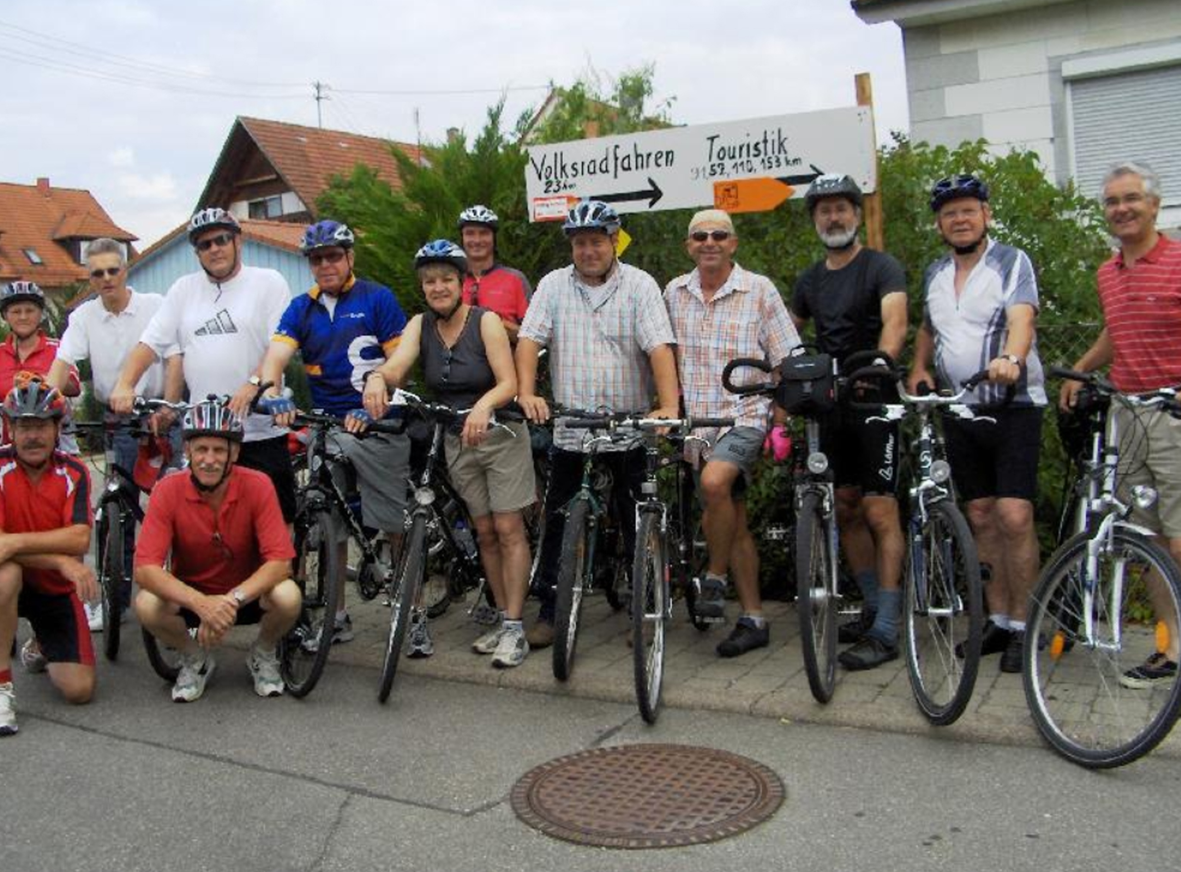 Das Bild zeigt Gemeinderäte und Teilnehmer der Tour de Ländle aus Bodelshausen die im Jahr 2009 an der Radtouristik „Rund um den Kreis Tübingen“ teilgenommen haben.