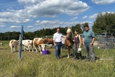 Im Rahmen seiner Hofbesuche war Bürgermeister Florian King kürzlich auf dem Burgstallhof bei Katharina und Sascha Hank zu Gast. Der im Nebenerwerb geführte Betrieb beeindruckt durch großes Engagement und spürbare Leidenschaft für Tiere und Landwirtschaft.