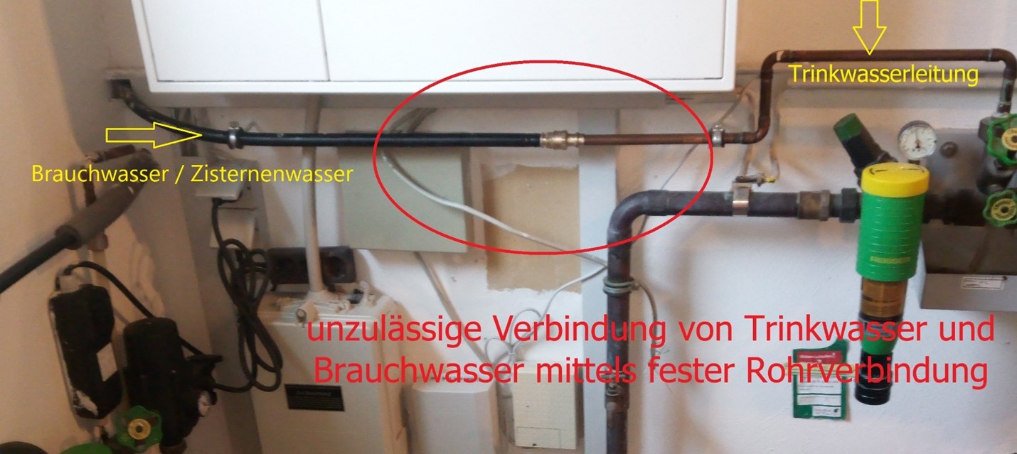 Widerrechtliche Installationen zwischen Trinkwasser und Brauch- und Zisternenwasser