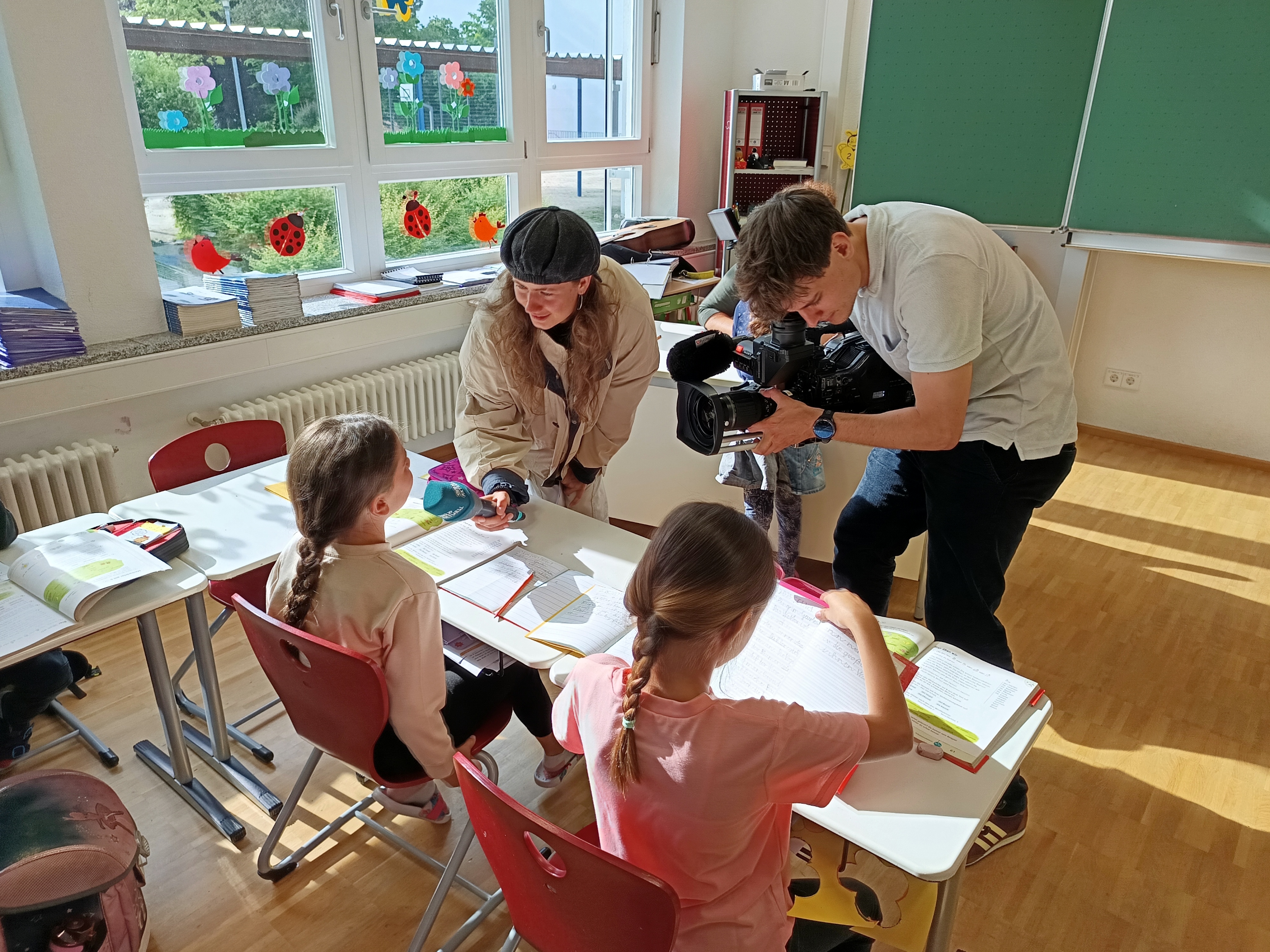 Diese Woche hat sich das SWR-TV angekündigt, um über unsere Schulwegetiger, Tigermamas, Tigerstempel etc. zu berichten. Zwei Kinder wurden auf ihrem Schulweg begleitet, an den Tigerhaltestellen vorbei direkt ins Klassenzimmer. Dort wartete bereits eine Tigermama, um das Laufen mit einem Stempel zu belohnen. Natürlich wurde von der 2b auch noch unser Tigersong vorgetragen. Der Beitrag ist abrufbar in der SWR-Mediathek.